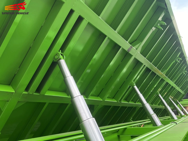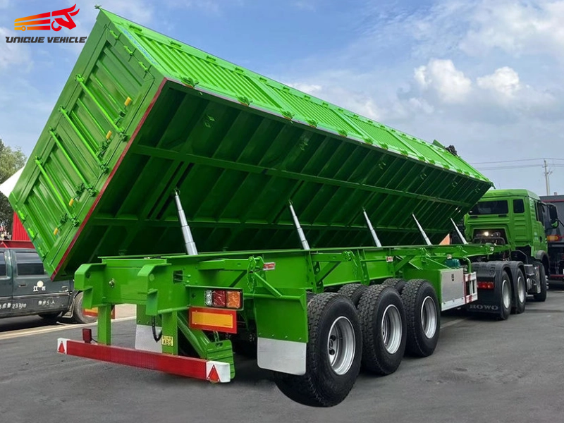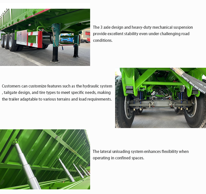 Customization Options: Customers can customize features such as the hydraulic system, tailgate design, and tire types to meet specific needs, making the trailer adaptable to various terrains and load requirements.