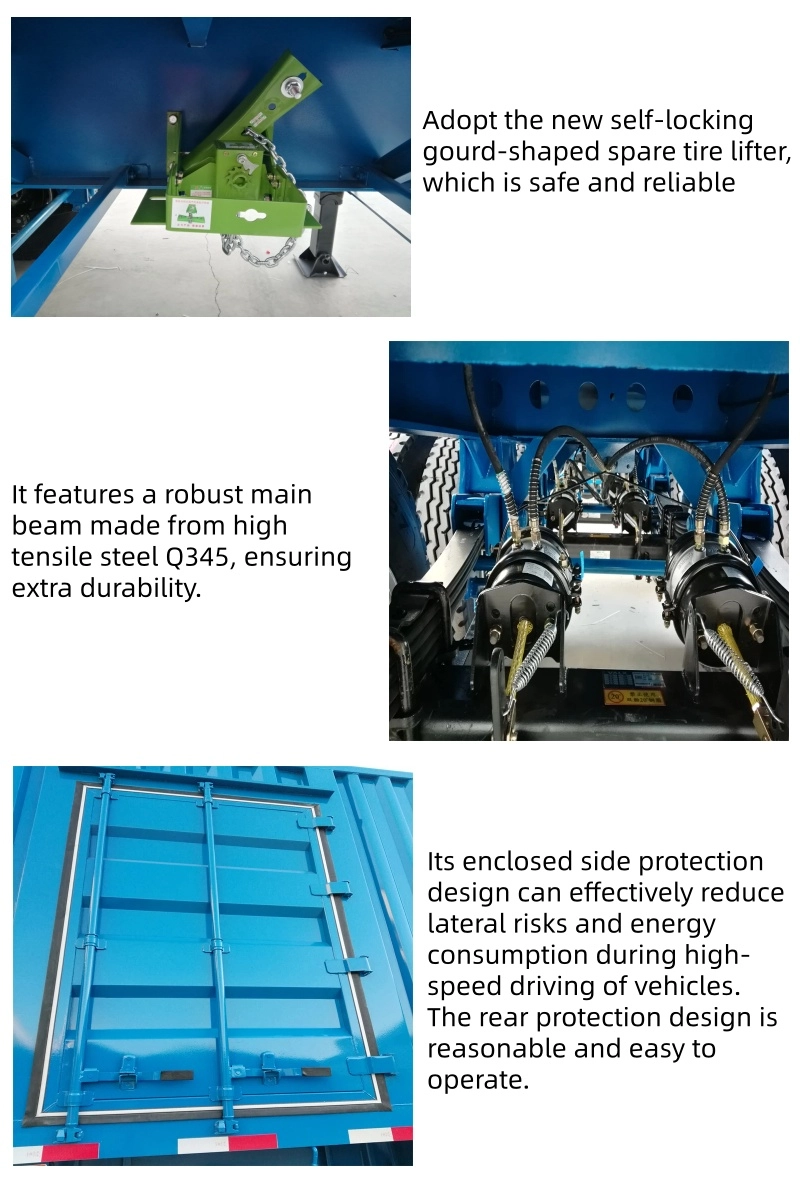 This cargo transport semi trailer is designed for maximum efficiency, featuring a box cargo structure that optimizes space while providing excellent protection for goods. The three-axle configuration enhances load distribution, reduces wear and tear, and improves stability during transit, ensuring safe delivery every time. Additionally, streamlined components minimize maintenance needs, so your operations can run smoothly and cost-effectively.